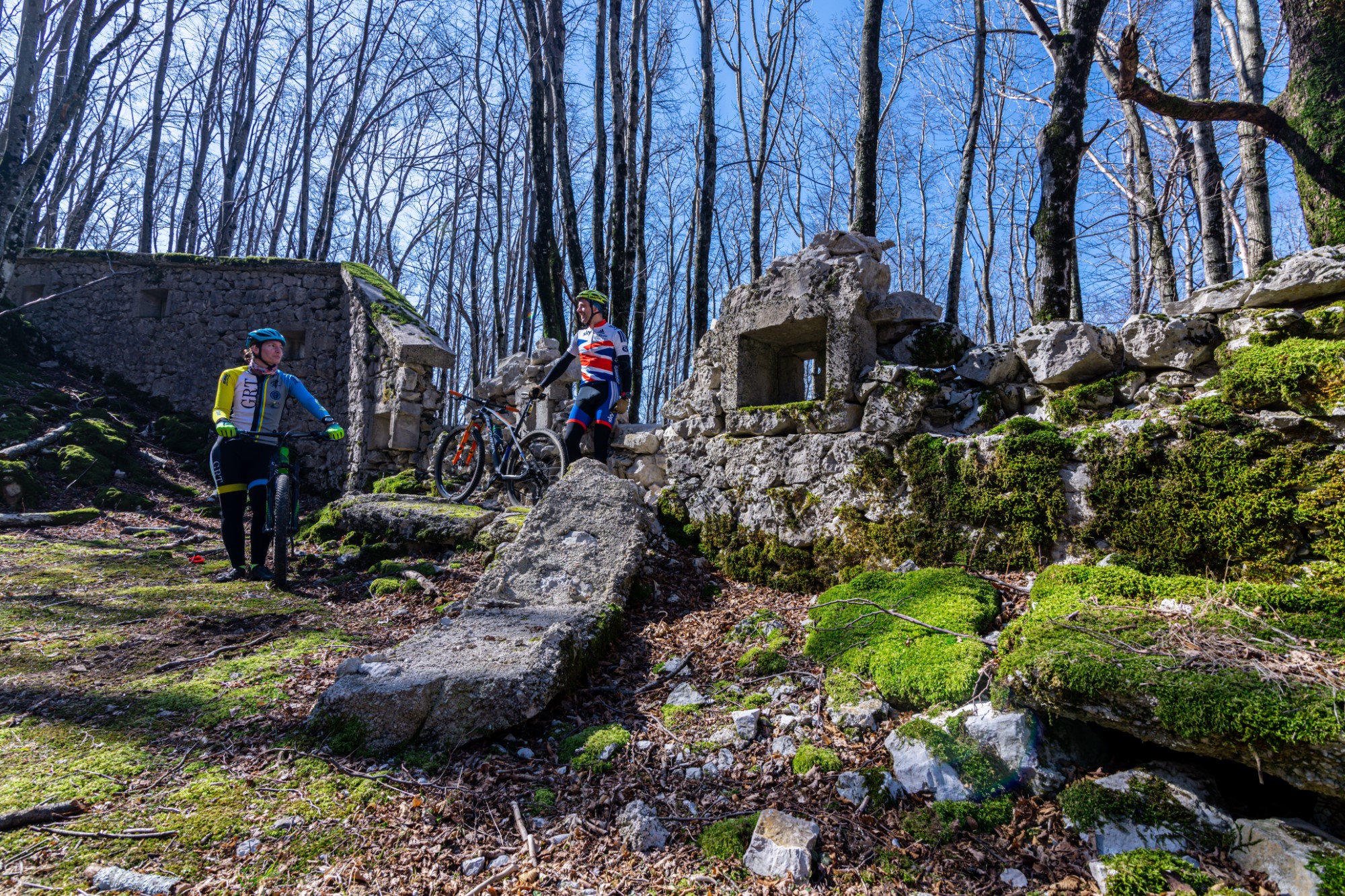🔴 Biciklistička avantura kreće prelaskom mostića u Rastočinama. Biciklirajte do vrha „Bukove“ polu asfaltiranom cestom. Na prvom skretanju idete desno i vozite do sljedećeg račvanja na kojem skrećete lijevo. Pratite put za staru talijansku vojarnu (karaula), po kojoj je staza dobila ime. Pratimo spust od vojarne u duljini od 200 metara te na račvanju skrećemo lijevo. Kolskim putem spuštamo se do rimskog limesa na području Općine Klana, a dolazimo i do lovačke kuće Vranjevo. Šumskim putem bicikliramo uz dalekovod.